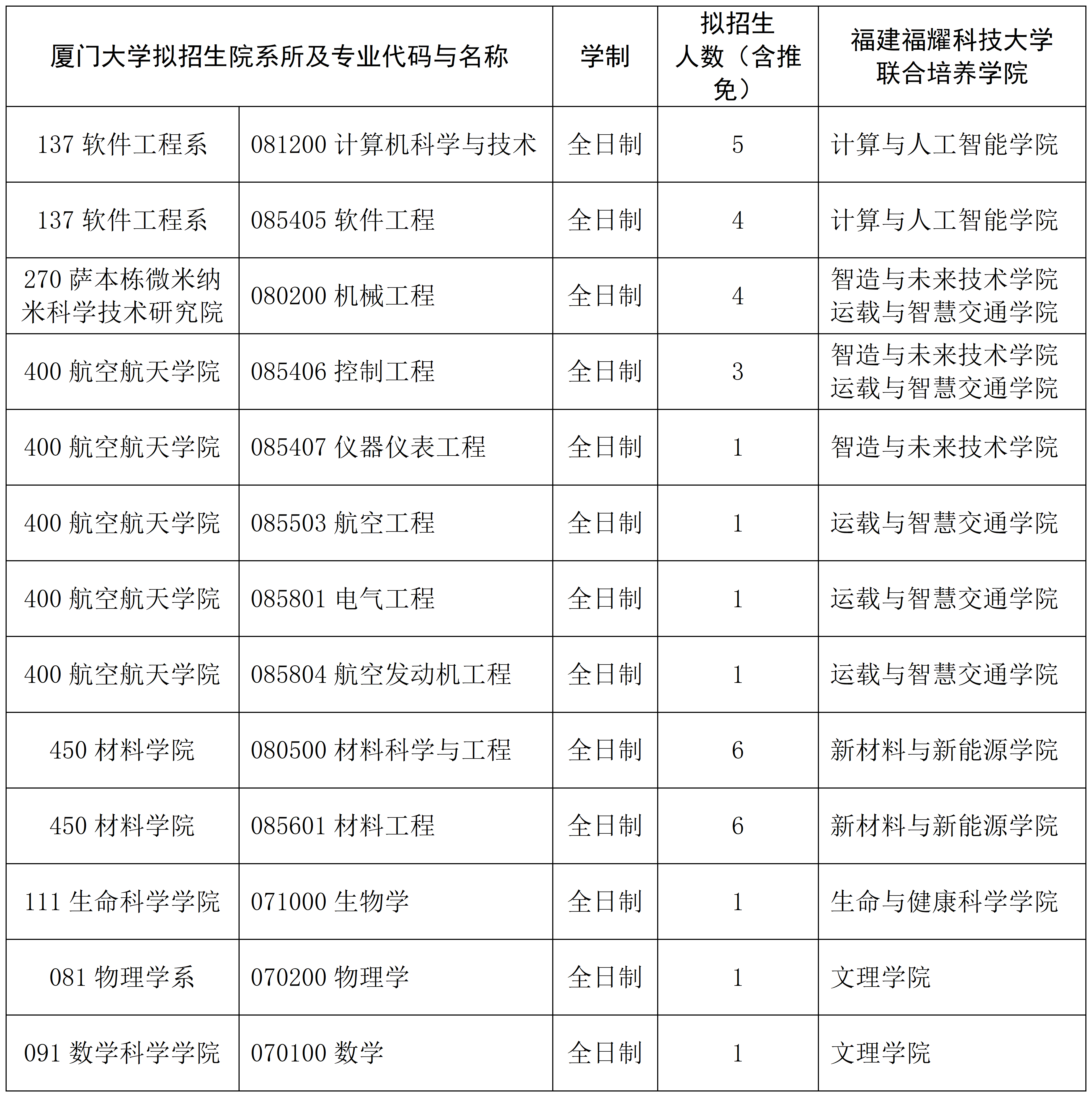 记者注意到,与厦门大学合作的2026级联培硕士生专业包括计算机科学与技术、软件工程、机械工程等,包括推免在内共拟招生35人。