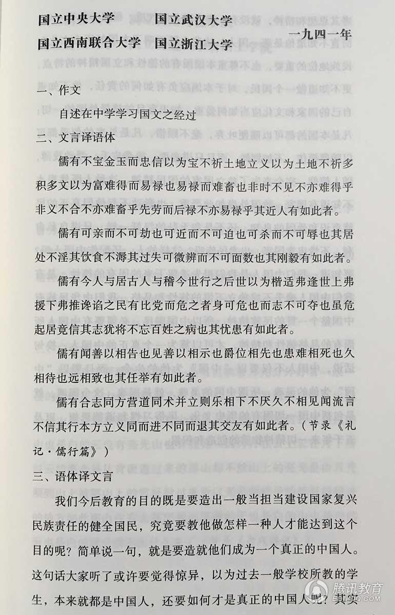 近来,高三毕业生们陆续受到了心仪大学的录取通知书,满怀期待的等开学。那如果回到民国,小伙伴 们还有信心考取心仪的大学么?看看这组民国老试卷超豪华的”明星“阵容,命题人为胡适、朱自清、钱穆、闻一多、华罗庚、陈寅恪等,答题人为钱钟书、季羡 林、金庸、杨振宁、钱学森、黄仁宇等。翻阅民国当年自主招生的时候大学的考题,会发现很多的题目都是关于读书的,比如西南联大等四校联合命题中,要求学生 把学习国文的经过写成作文。(图/@宋潮 @kindle分享 @疯子街老道 @熊培云)