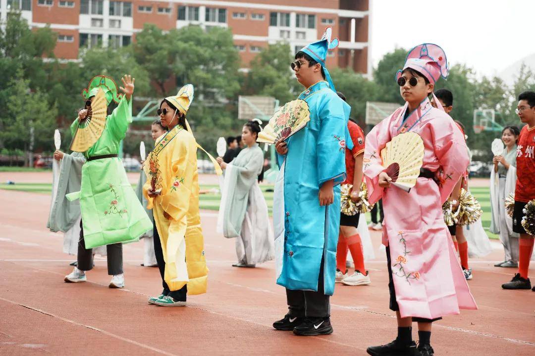 苏州的状元风流,与评弹的吴侬软语、足球小子的热力舞蹈在初二(5)班的方阵中激情碰撞。
