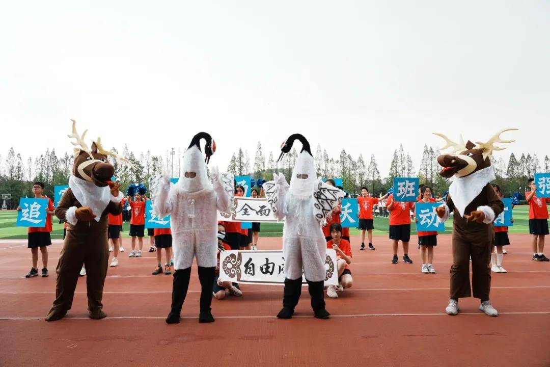 盐城的湿地精灵“麋鹿”与“丹顶鹤”也欢快登场,初二(6)班将黄海之滨的生机带入赛场。