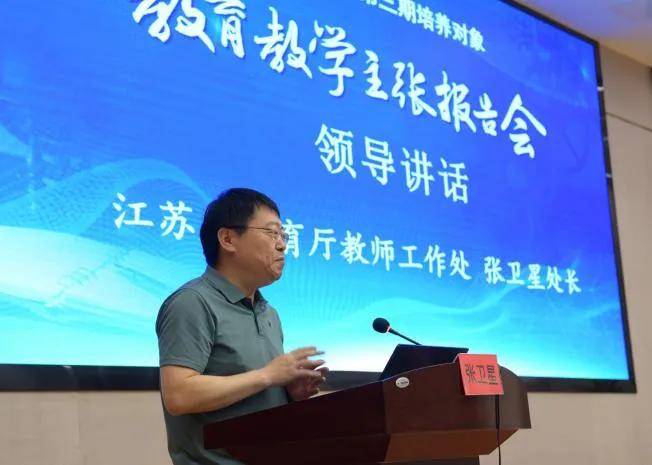 张卫星处长在讲话中指出,“苏教名家”培养工程是江苏省基础教育教师队伍建设的标杆工程和最高平台。他从“层次最高、学员最优、导师阵容最强、保障力度最大”四个方面,系统阐述了省教育厅对该工程的高度重视,并对培养对象表达了殷切鼓励与期待。他勉励大家要在“向上攀登、向实扎根、向深拓展”三个维度持续发力,以实际行动践行习近平总书记提出的教育家精神,勇担引领江苏教师队伍发展的时代使命。