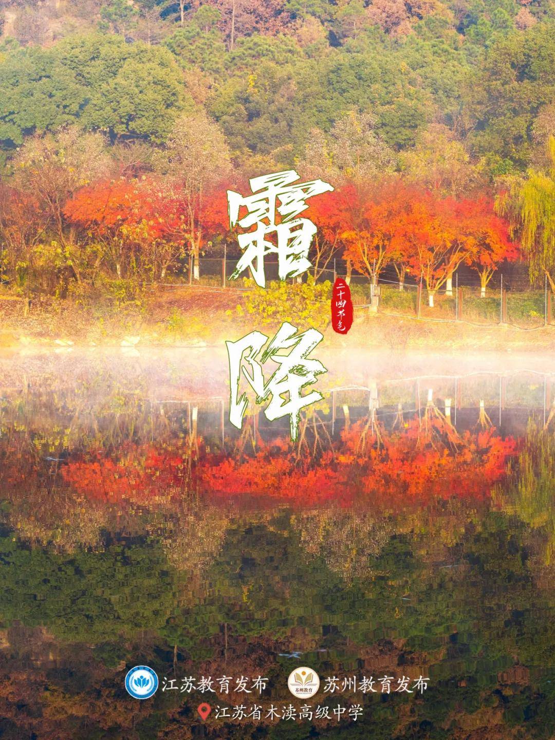 霜降节气气温骤降,昼夜温差大,三候反映自然变化,寓意学子在寒霜中淬炼成长。