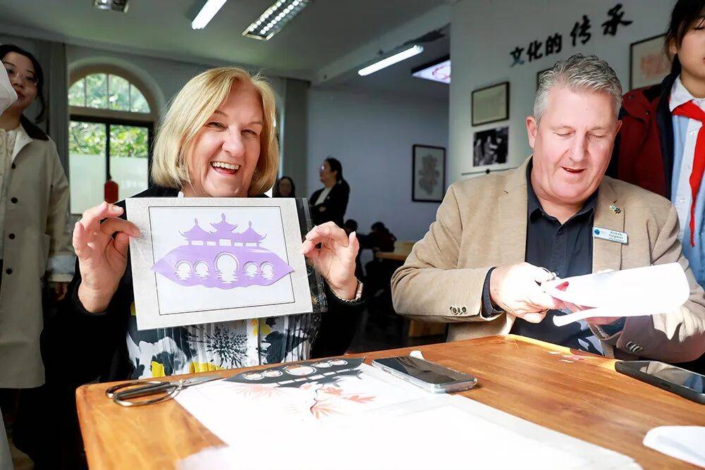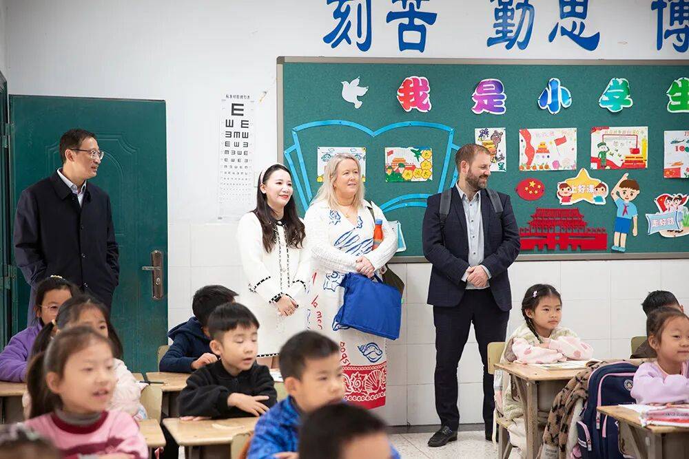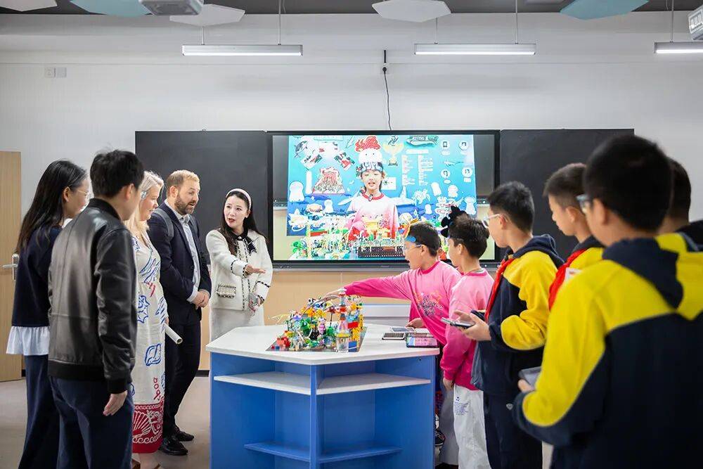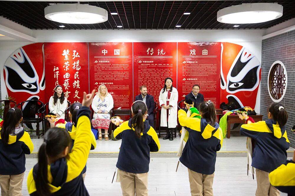 扬州市梅岭小学西区校与弗莱尔斯小学、克拉伦登路小学成功缔结为友好学校。访问期间,外宾们聆听了学校“五福梅”校园文化介绍,欣赏了小梅花合唱团与木偶剧团的精彩展演,并在“小老师”的指导下亲身体验软笔书法。此外,学校科创社团展示的智能机器人项目与科学实验,以及生动的英语课堂,均展现出传统与现代交融的办学特色。