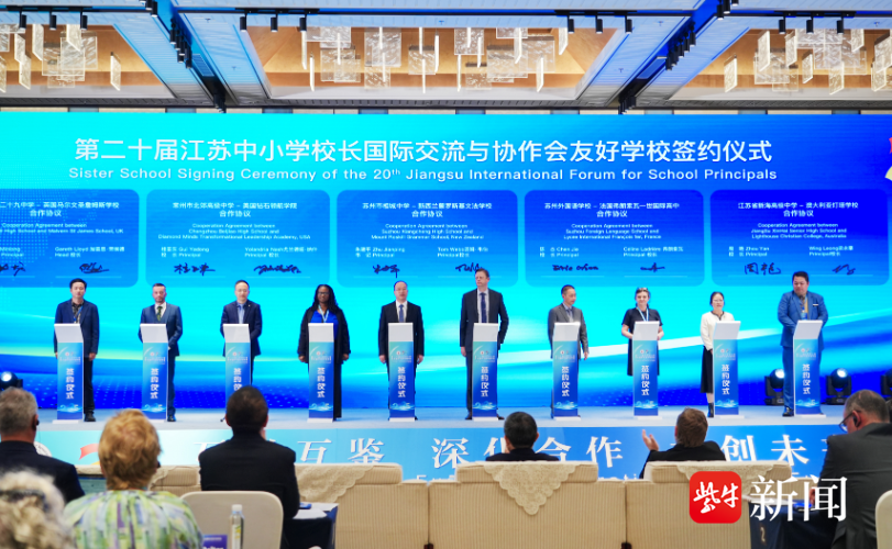 第二十届江苏中小学校长国际交流协作会举行,16国参加,中外46校结对,推人工智能教育,促合作。