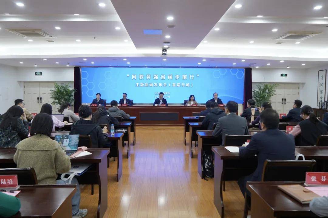11月6日,“向教育强省阔步前行”主题新闻发布会(基层专场)在苏州职业技术大学举行。南京工业职业技术大学党委书记谢永华、无锡职业技术大学党委书记龚方红、苏州职业技术大学党委书记温贻芳、扬州职业技术大学党委书记马顺圣分别作“职业本科高质量发展”主题发布,省教育厅二级巡视员、办公室(新闻宣传办公室)主任焦伟主持发布会。