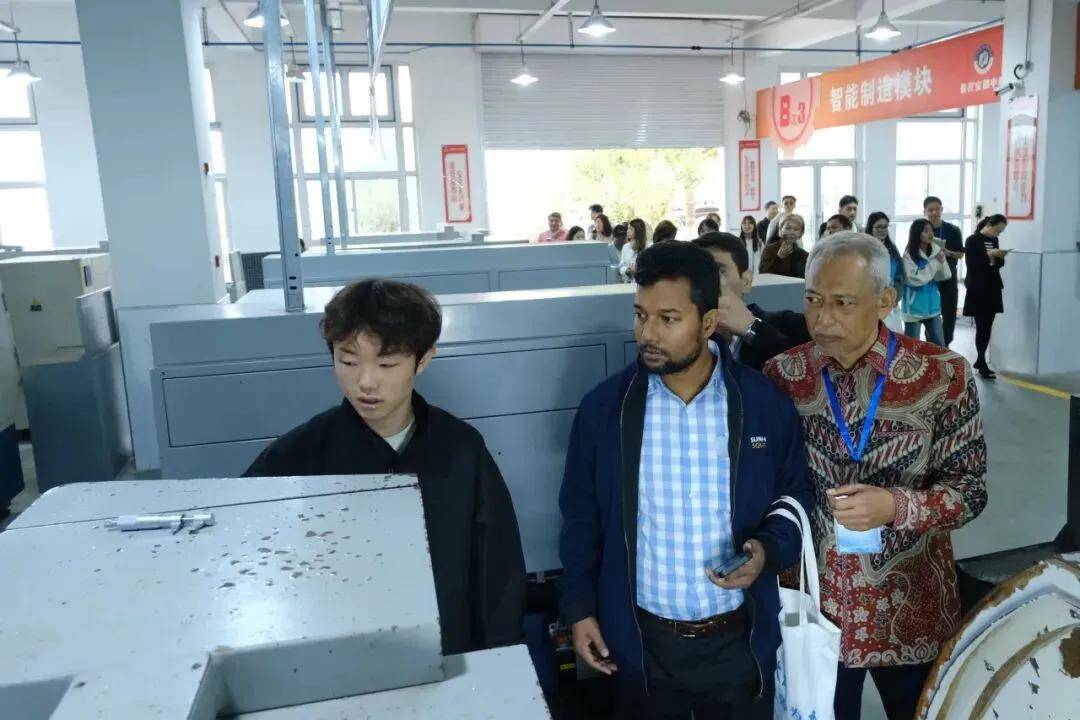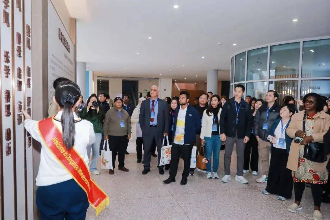 来自 20个国家的 45 名教育官员、专家,在苏州大学新教育研究院、海门区新教育培训中心、海门区中小学教师研修中心相关负责同志陪同下,走进江苏省海门中等专业学校、东洲国际学校、新教育小学三所学校,通过沉浸式参观、特色课程展示、文化体验与主题报告等形式,深度感受海门教育的创新实践与文化魅力,为 “一带一路”教育合作搭建友谊桥梁。