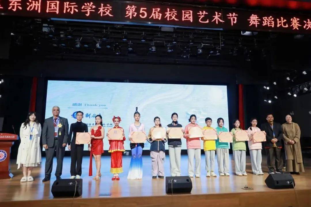 崇謇馆内,手绘图画书展呈现孩子们的童真想象,色彩与线条间的心灵共鸣让外宾驻足;二楼长廊上,古琴、竹笛、钢琴旋律交织,学生创作的传统手工艺与现代设计作品相映成趣,构成流动的艺术盛宴;大报告厅中,学生舞蹈表演涵盖古典、现代、民族等风格,每一个舞姿都书写青春诗篇,外宾们为获奖选手颁发证书;体育馆内,动漫形象设计比赛迸发创意,传统纹样与现代美学在画作中碰撞,展现课堂知识的生动转化。