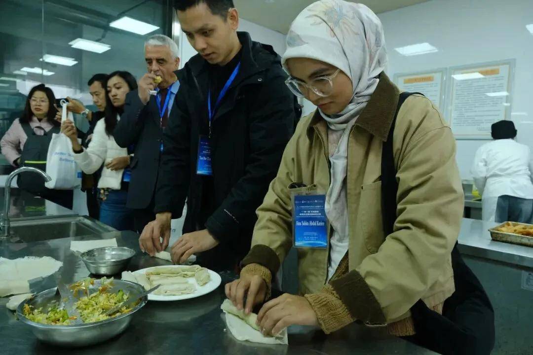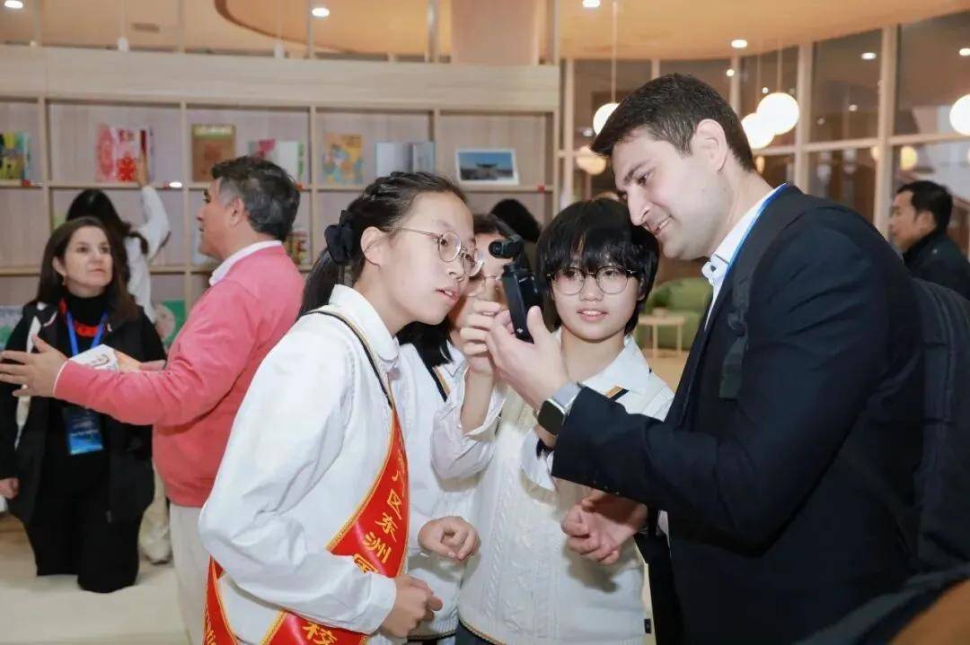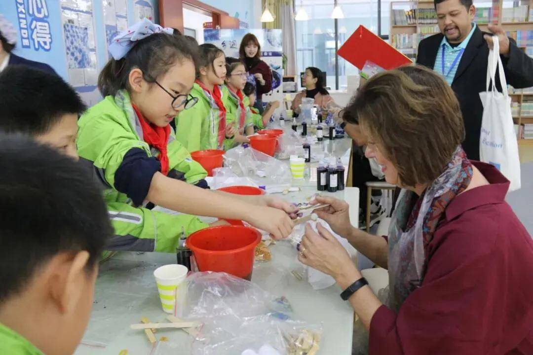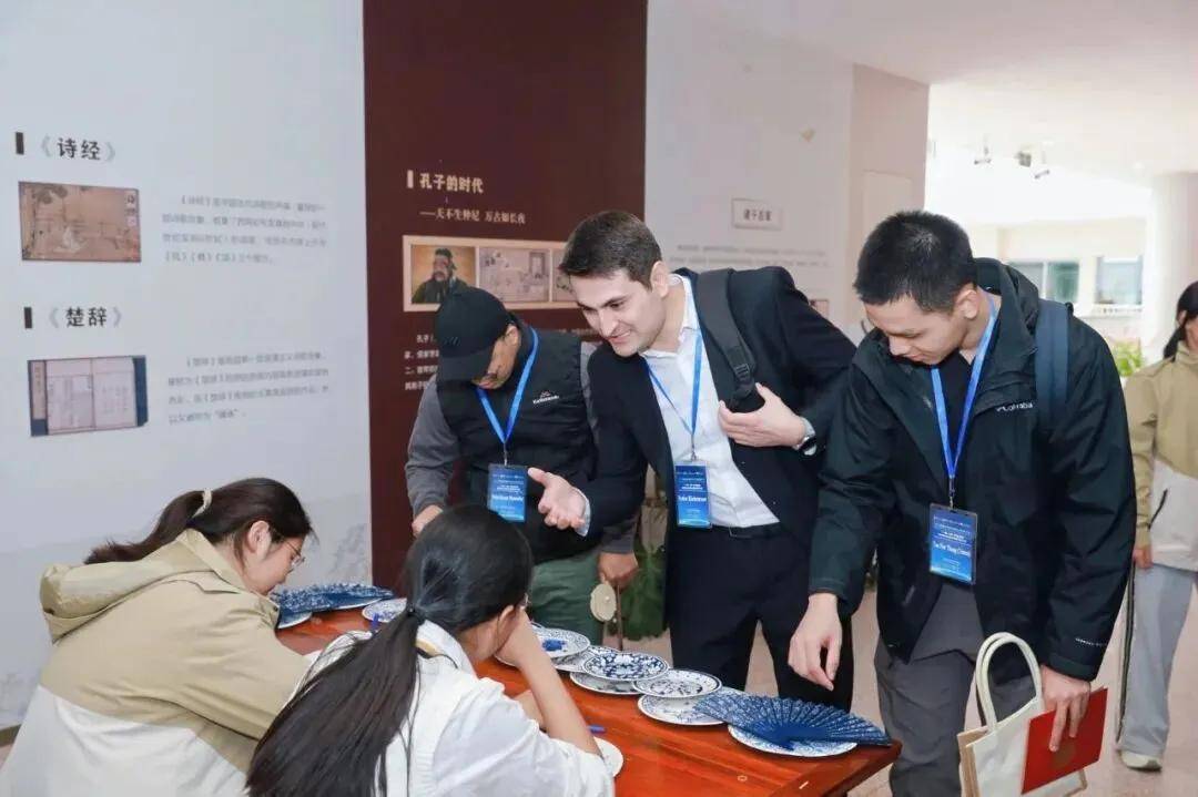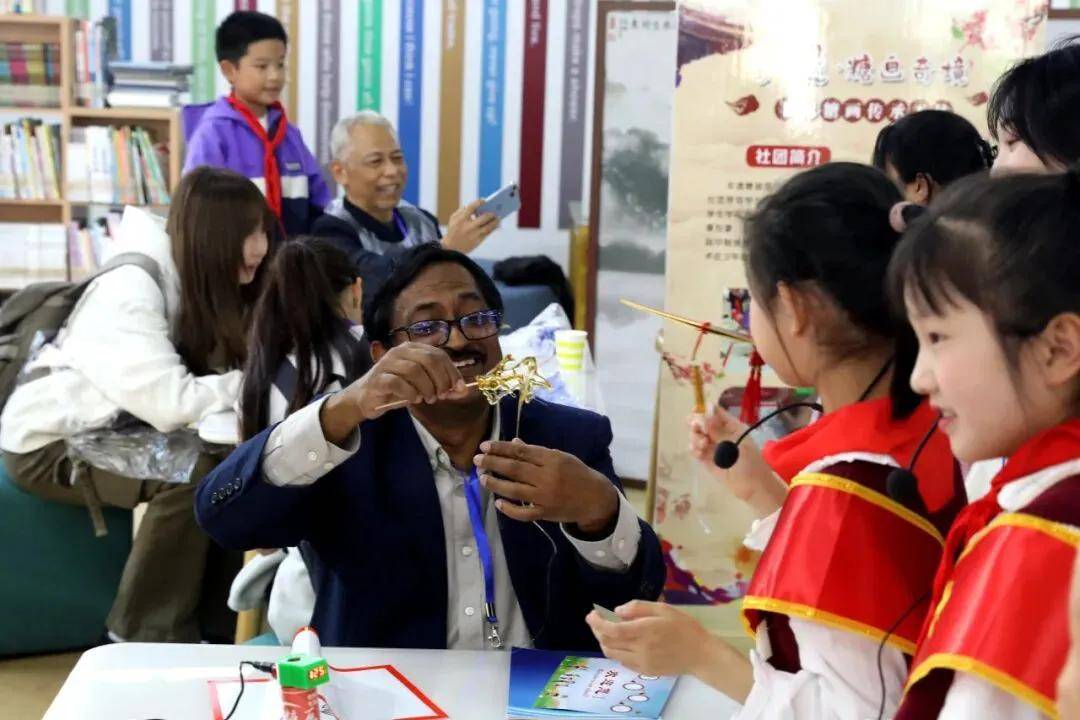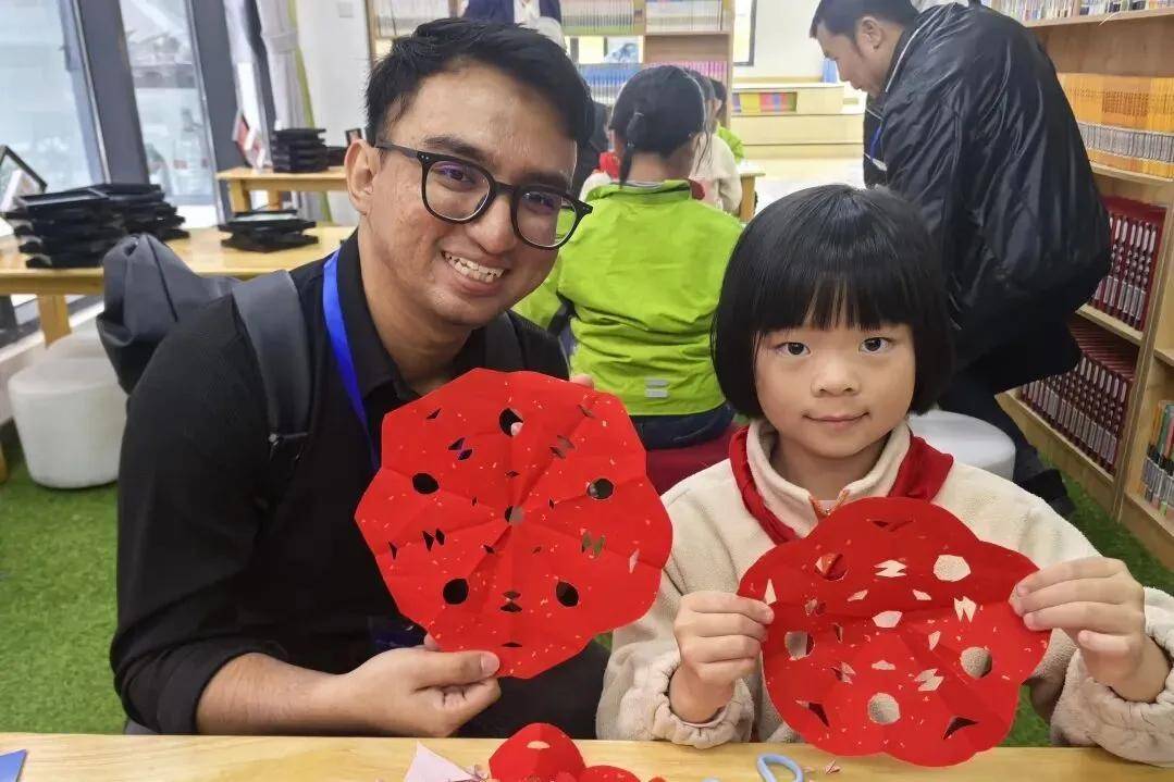 合唱教室内,学生身着传统服饰,以琵琶、古筝伴奏吟唱《诗经・小雅・鹿鸣》,古韵悠扬让外宾沉醉;茶道展示节,孩子们手捧学校自主研发的养生茶递予来宾,诠释“以茶待客”的中华礼仪;舞蹈教室里,学生们以活力舞姿演绎非洲经典歌曲《Jambo》,并邀请来宾手拉手共舞,国界在欢笑声中消融;非遗体验区,外宾们兴致勃勃地参与写“福”字、制作艾草锤、活字拓印、漆扇绘制等项目,在指尖实践中触摸中华优秀传统文化的温度。
