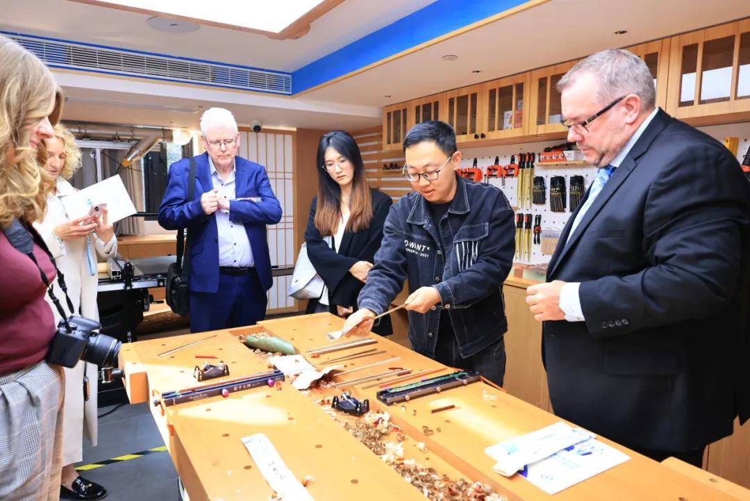 外国嘉宾在学生导游带领下,沉浸式体验学校特色课程。