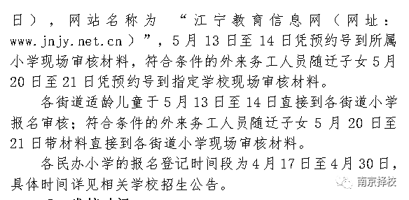 今年江宁区在东山片区公办小学率先使用了网上报名,网报时间为5月2日至14日。