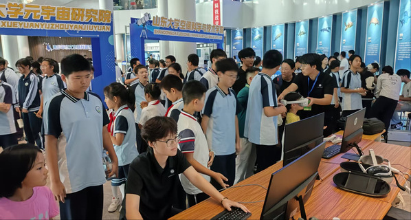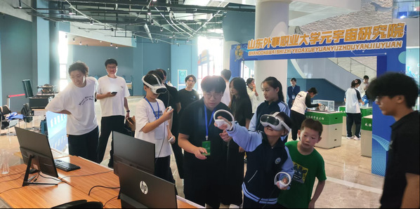 威海第十一届中小学生科技节举办,山东外事职业大学元宇宙研究院展示VR游戏、数字孪生成果,吸引学生关注,推动科技普及。