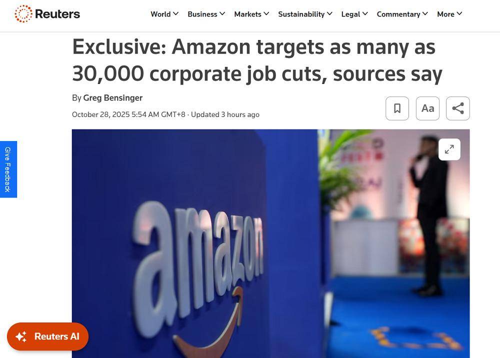 亚马逊拟裁三万企业员工,为最大规模裁员,涉及多项部门;系因成本削减及招工过量,或受AI影响,部分为政策调整所致