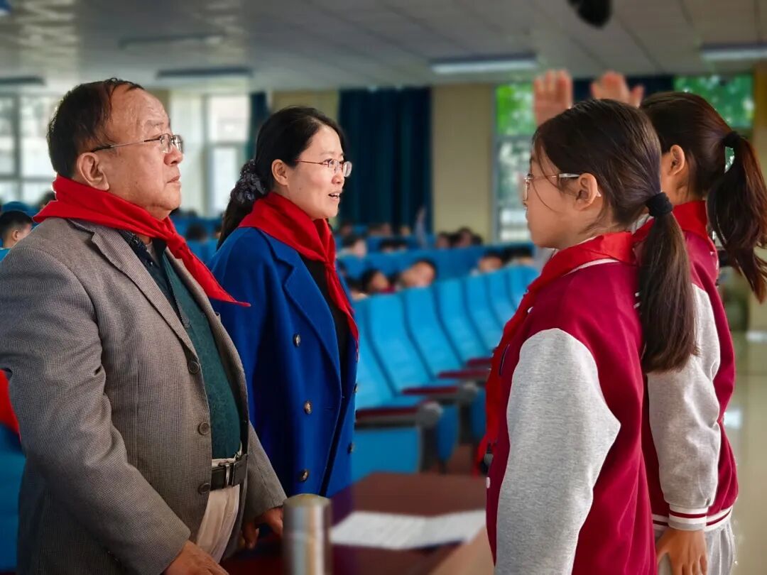 仪式结束后,学校邀请退休党员田庆禄开展红色爱国教育讲座。他结合自身经历,用“革命先辈过雪山草地”“国家从‘两弹一星’到航天强国”等生动故事,讲述革命先辈英勇事迹与国家科技、经济发展成就。孩子们听得聚精会神,听到感人处眼神坚定,不时报以热烈掌声。