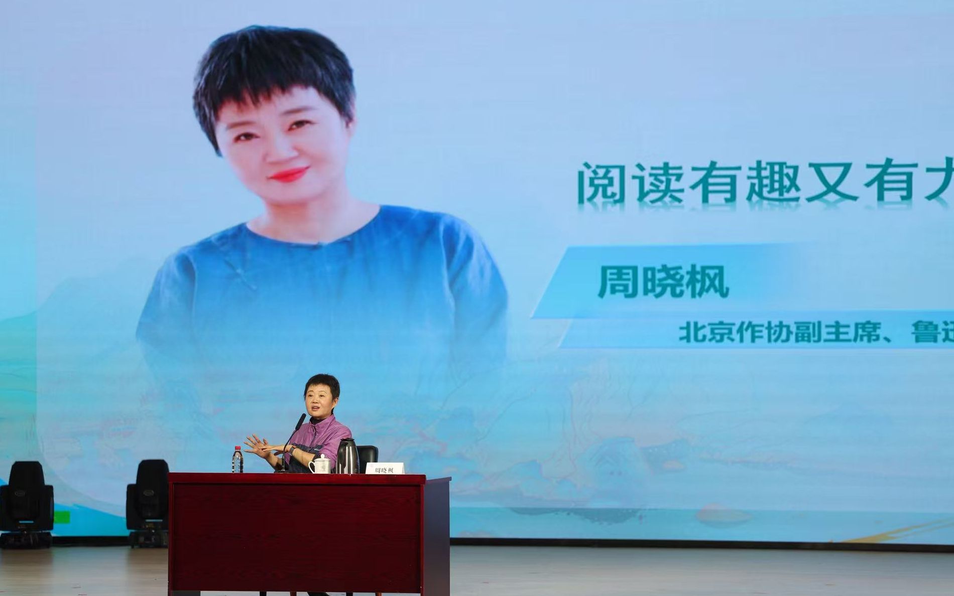 这是北京市委教育工委主办,新京报社、对外经济贸易大学承办的“书香青春 阅见未来”2025年首都大学生系列读书活动之“文化名家进校园”活动。当日,周晓枫以“阅读有趣又有力”为主题,与来自首都13所高校的数百名师生代表分享了她的阅读感悟,也一一解答了学生们在阅读与写作中遇到的种种困惑。