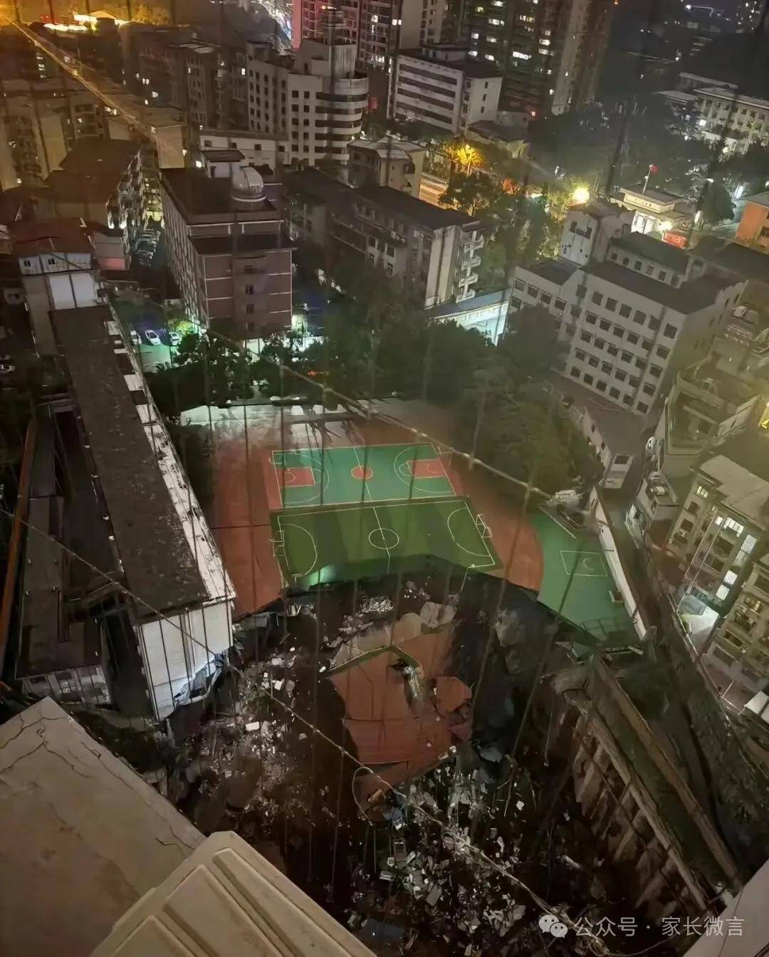 17日晚,多位网友发文称,邵阳市资江学校“塌了”。相关视频显示,学校操场大面积塌陷,形成废墟。