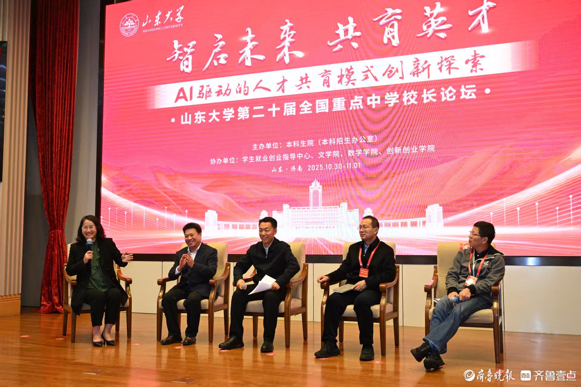 10月31日,山东大学举办第二十届全国重点中学校长论坛。本次论坛首次推出“交流沙龙”环节,特邀齐鲁晚报资深教育记者徐玉芹主持,与来自东西南北四所代表性中学的校长展开一场跨越地域的教育对话。面对人工智能的浪潮,四位校长分享了所在学校在AI赋能教育中的实践与思考,既有硬核技术落地课堂的惊喜,也有对教育本真的坚守与反思。