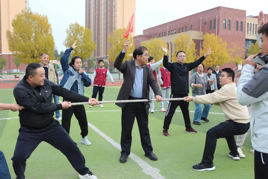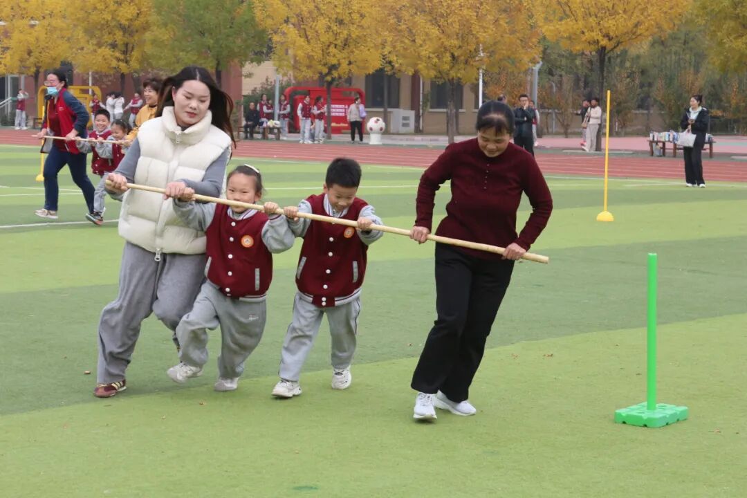 家长拔河赛将气氛推向了 高潮,双方家长紧握绳索、奋力后拉,劲往一处使,场边孩子们铆足力气为爸爸妈妈呐喊助威,紧张热烈的氛围感染着在场每一个人。无论参赛队伍是否夺冠,都能收获全场的赞美与鼓励,因为大家都展现出了不屈不挠的体育精神。