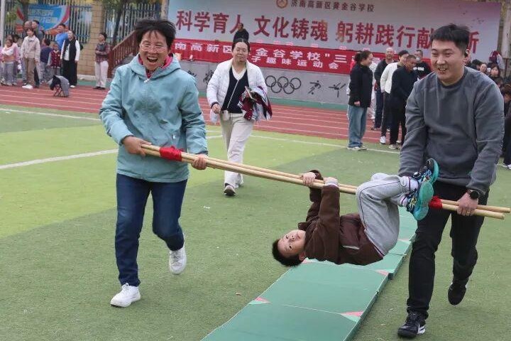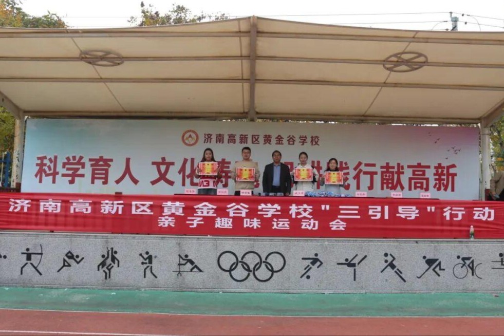 济南高新区黄金谷学校举行亲子趣味运动会,家长学生同乐,近家校互动深化。