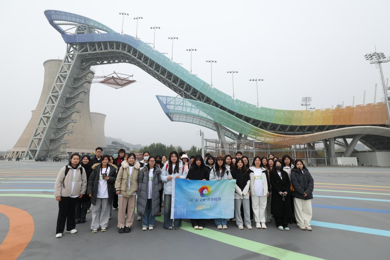 参观完三高炉后,同学们又穿过园区,来到了以敦煌壁画“飞天”为设计灵感,形似飘带、曲线流畅,充满“后工业”风格的首钢滑雪大跳台。