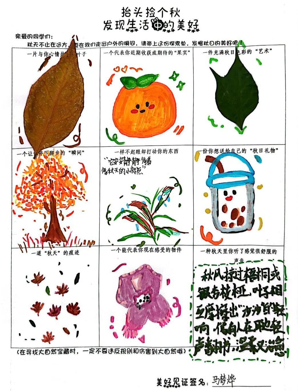 自然探索环节中,学生们走进校园角落或郊外场地,用心收集形态各异的秋叶、代表丰收的自然果实,用镜头捕捉秋日独特色彩。在与秋景的互动中,他们细致观察季节更替的特征,从叶脉纹路、果实形态中发现细微之美,不仅领略了秋日风光,更学会从生活点滴中感知美好,完成了一场充满诗意的自然对话。