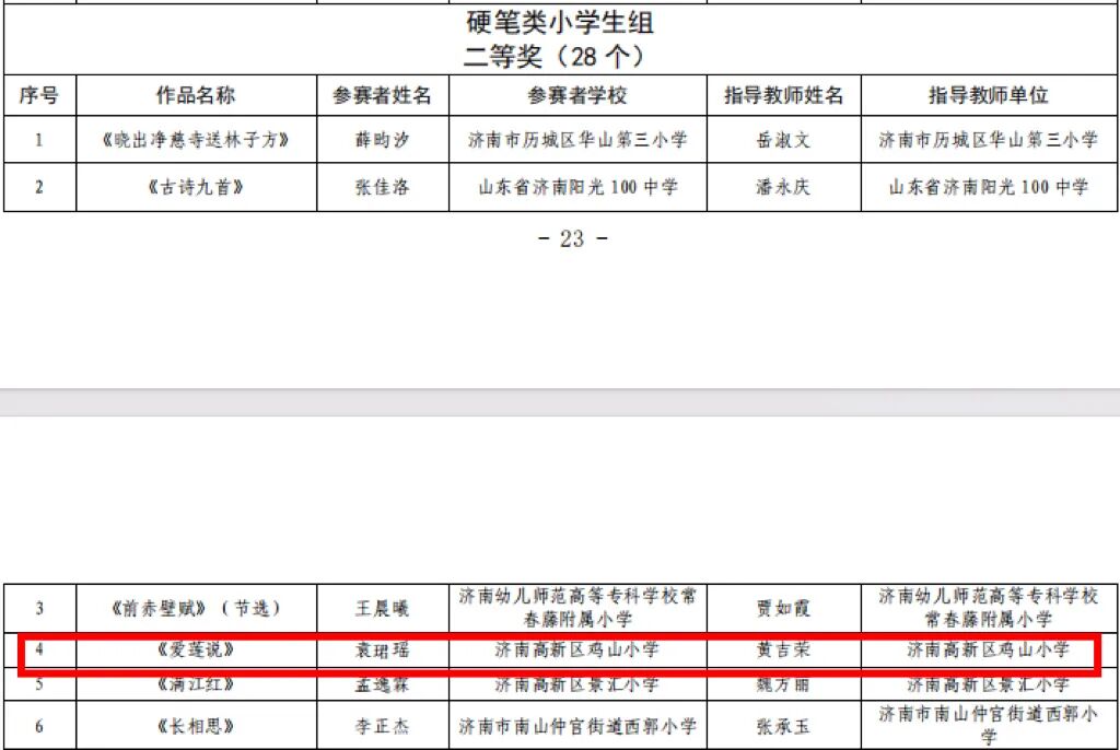 济南高新区鸡山小师生获第七届中华经典诵写讲大赛多奖项,校长、教师、学生分别获奖,学校重视书写教育。