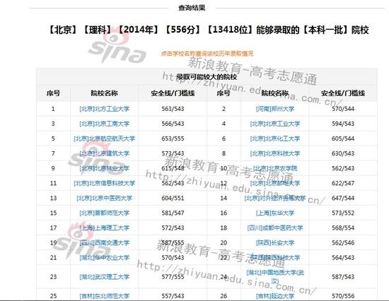 从新浪高考志愿通“根据分数/位次选学校”功能中我们可以查询到下面这些信息。