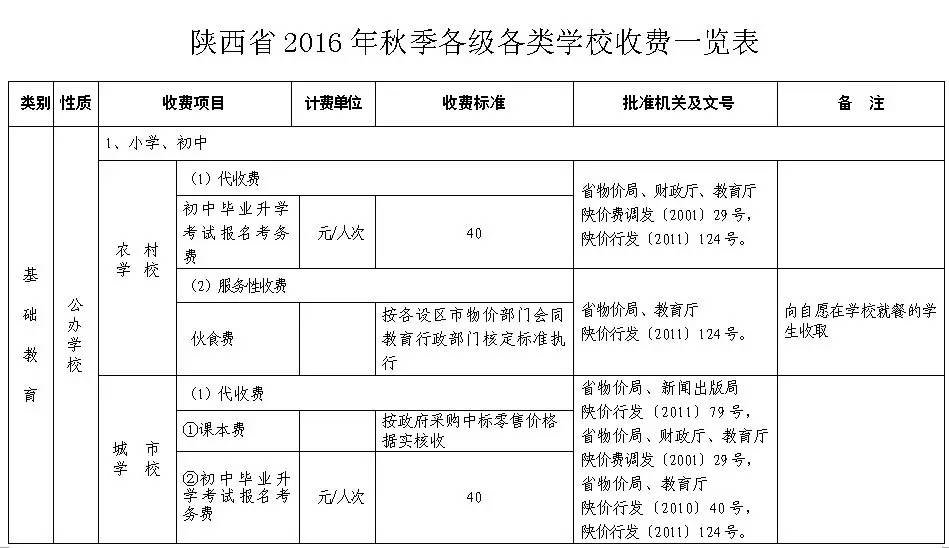 为切实加强教育收费管理,进一步规范学校收费行为,现将我省2016年秋季各级各类学校收费项目及标准予以公告。各级各类学校要按照《陕西省教育收费公示制度》的有关规定,主动接受社会监督。