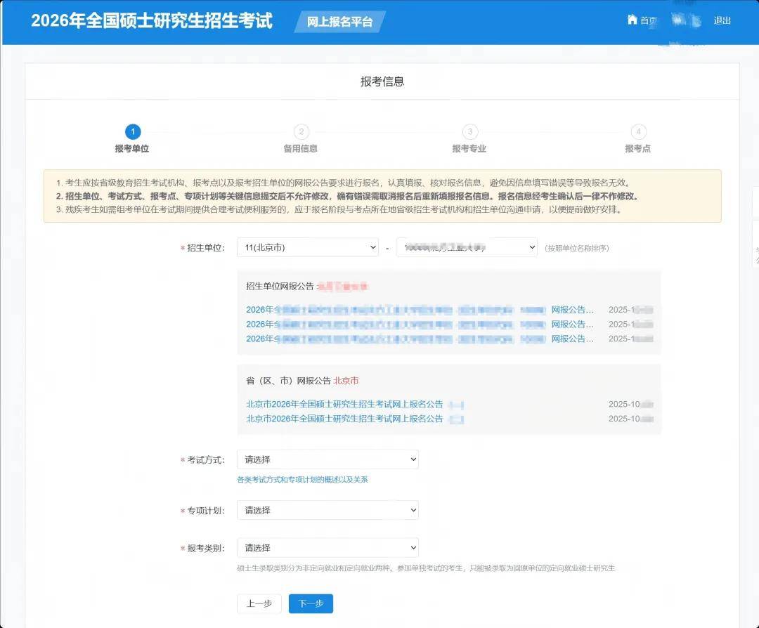 在这个阶段,考生可以参照《2026年统考考生需准备的网报信息》,先把个人信息准备在一个word或excel表格里,然后按照系统提示进行填写。