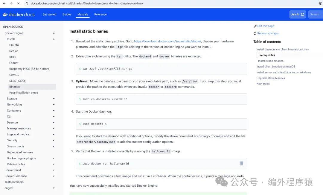 官网查安装包,下载后上传服务器,按指令安装,使用docker -v验证服务。