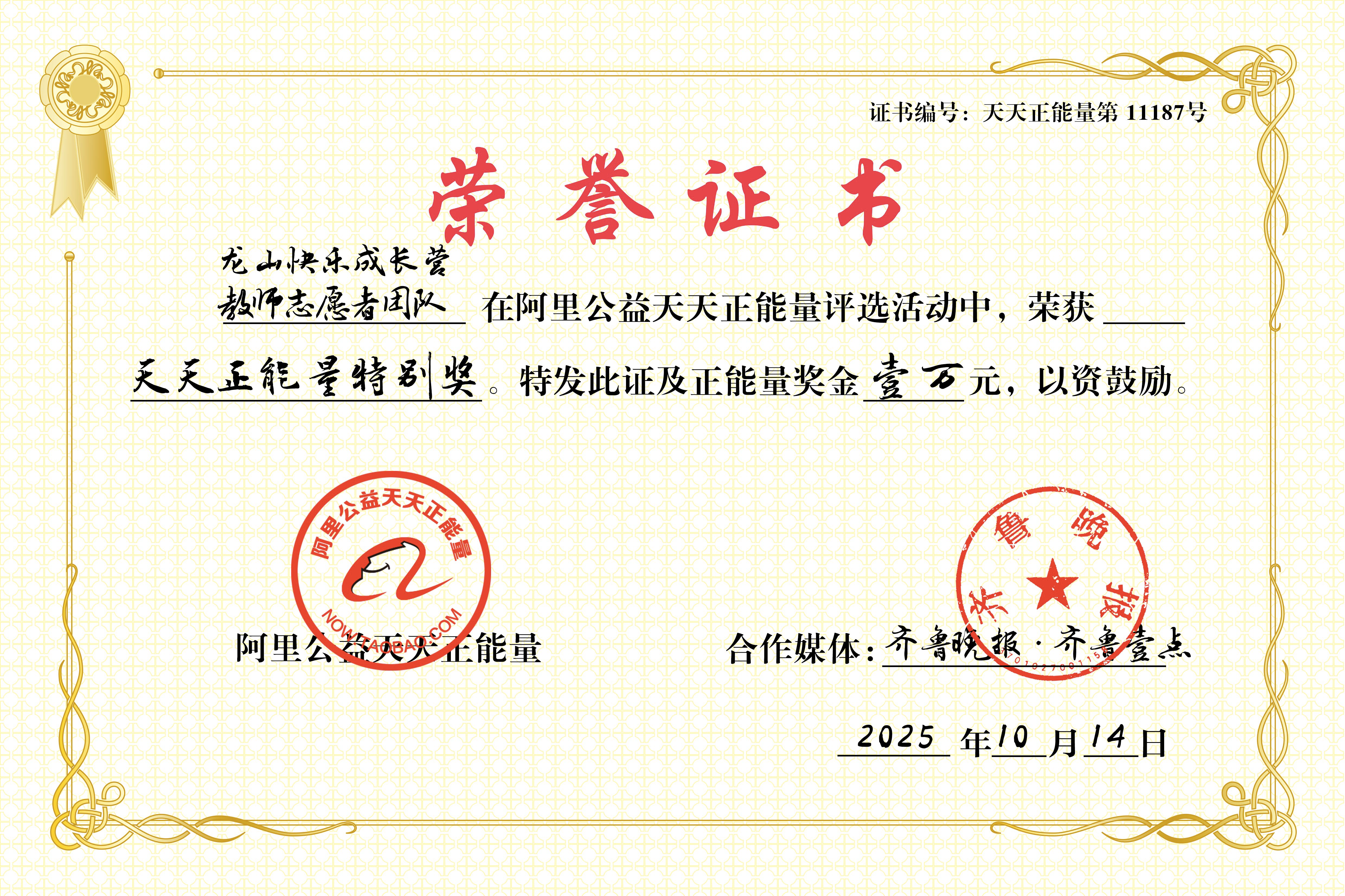 10月8日起,齐鲁晚报·齐鲁壹点连续报道了枣庄滕州市“龙山快乐成长营”的暖心故事。这个由教师志愿者为留守儿童打造的“家”,感动了无数读者。10月14日,阿里巴巴天天正能量决定联合齐鲁晚报·齐鲁壹点,为“龙山快乐成长营教师志愿者团队”颁发一万元正能量奖金。