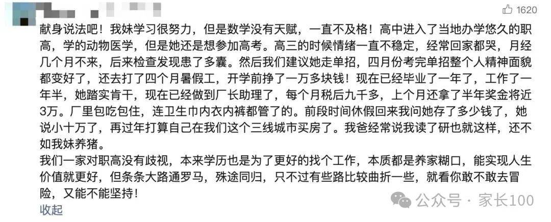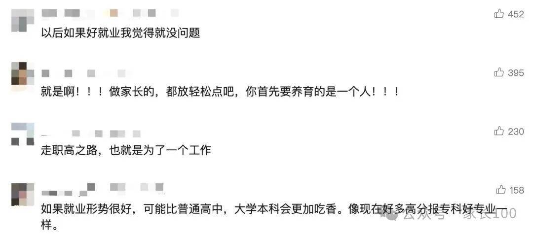 部分家长开始算一笔账:与其让孩子在不适应的普高文化课体系中痛苦内卷,最终可能也只考取一个普通大学,面临“毕业即失业”的风险;不如尊重孩子的特质与兴趣,选择一条能真正掌握核心竞争力的道路。