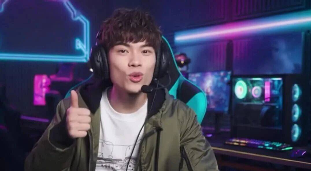 提示词:一个帅哥在电竞房对着摄像头兴奋的说”椒图AI真的太强大了,小白也能轻松搞定专业修图,感觉真的可以跟PhotoShop说再见啦!AI修图,就用椒图AI”最后比个大拇指