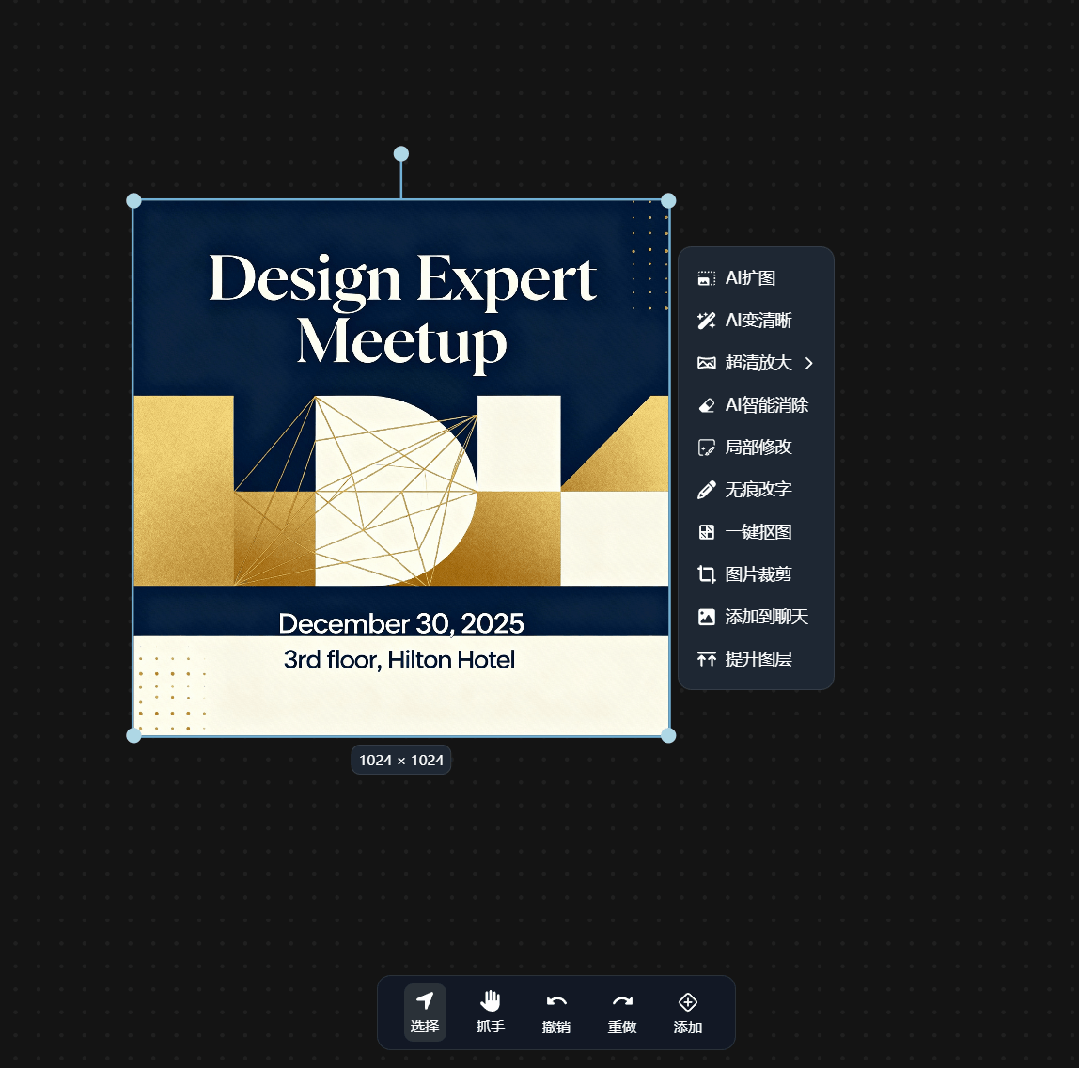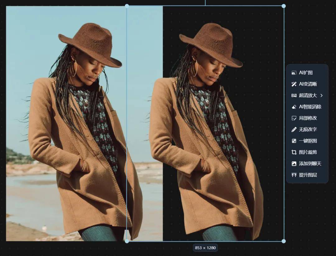 这个画布我觉得是最椒图AI最强大的功能,它的存在让图片所有的编辑操作都可以让AI一键完成。