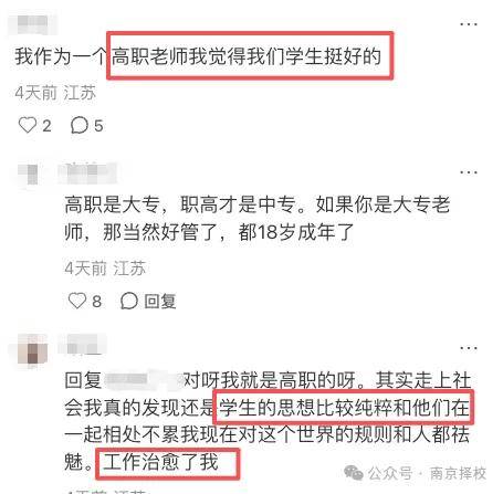 差的职高:有网友隐晦地提到“差的就不说了”,并引用了一句非常尖锐的评论来形容某些管理松懈的学校:“老师就两要求,女的别怀孕,男的别打架”(该网友注明是10年前的情况)。还有网友点名“xx那边很乱”,在那边上学的网友也表示“某个校区的八卦都能刷新三观”。