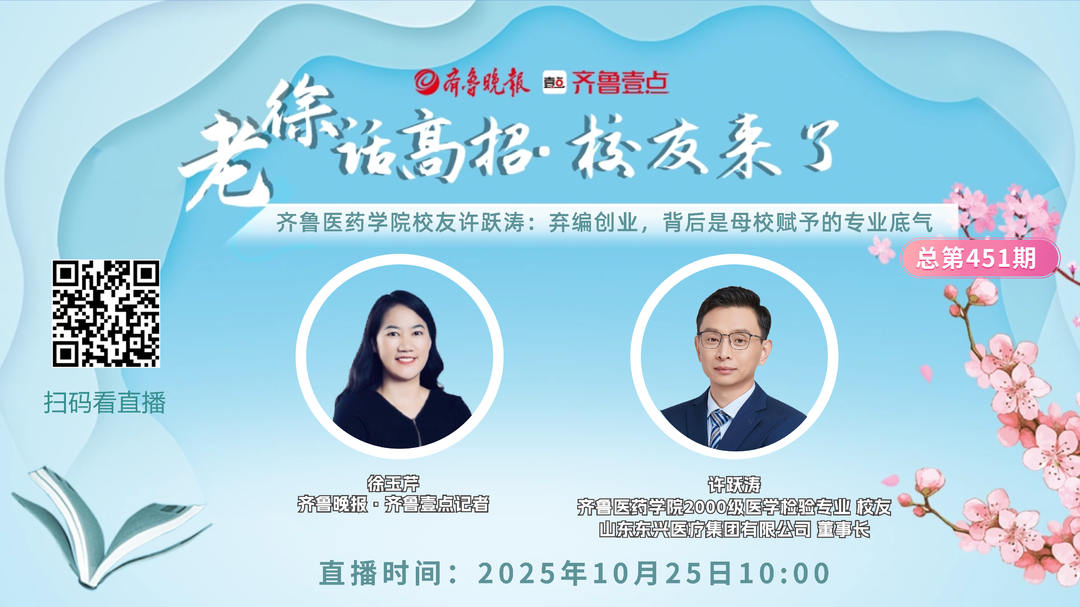近日,齐鲁晚报·齐鲁壹点金牌直播栏目“老徐话高招”推出“校友来了”专题。本专题试图通过挖掘校友成长故事,探寻高校人才培养密码,同时为在校生提供职业生涯规划参考。专题首期对话齐鲁医药学院2000级医学检验专业校友、山东东兴医疗集团创始人许跃涛,探讨其从专科生到企业家的成长轨迹,以及专业深耕与时代机遇如何共同塑造人生路径。