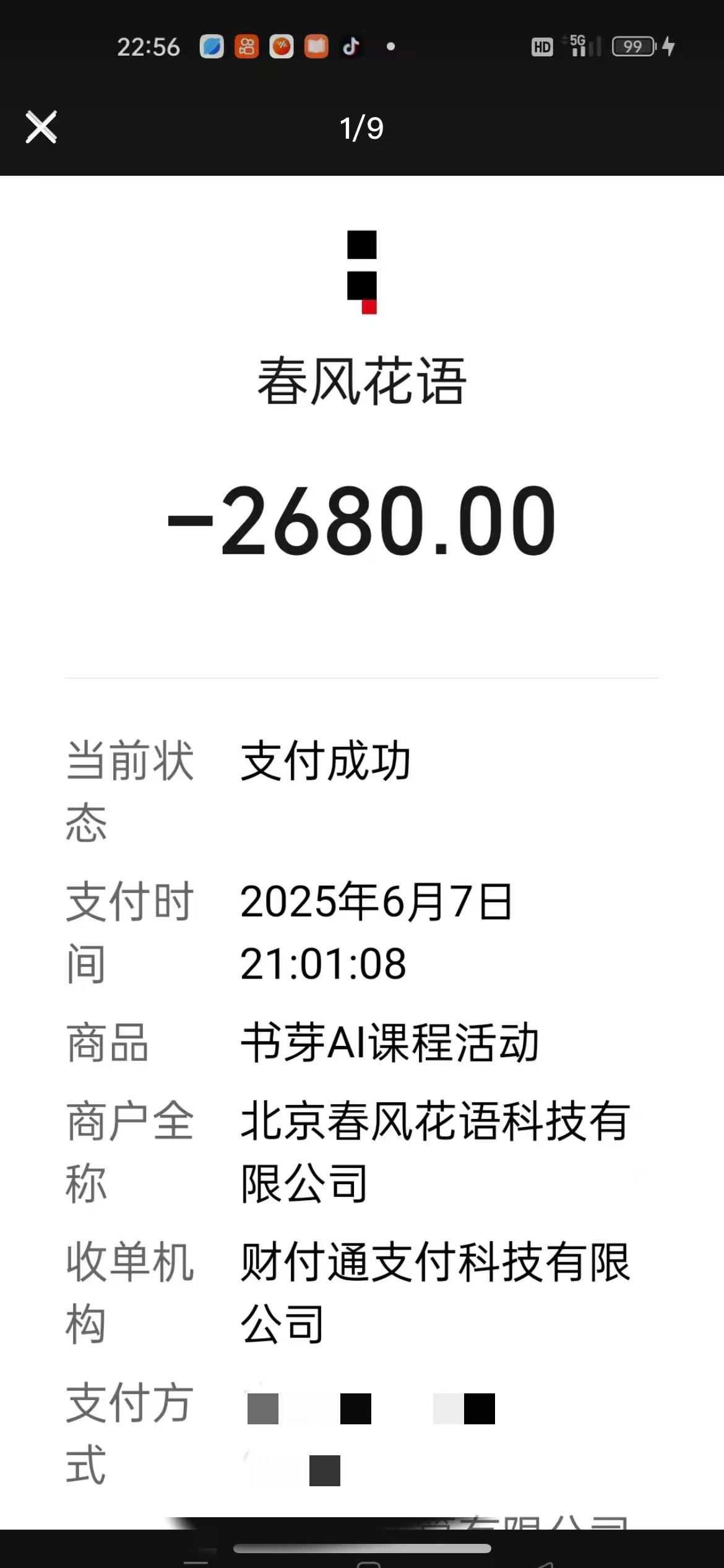 今年6月,他在网上看到“北京春风花语科技有限公司”的免费AI课程广告,“老人没有什么收入,赚点生活费”,这个朴素的愿望让他点开了广告。在7天免费课程中,“老师”通过企业微信与他建立联系,展示“其他老人日入过千”的成功案例,并做出了核心承诺:“包教会,赚不到钱不收钱”。