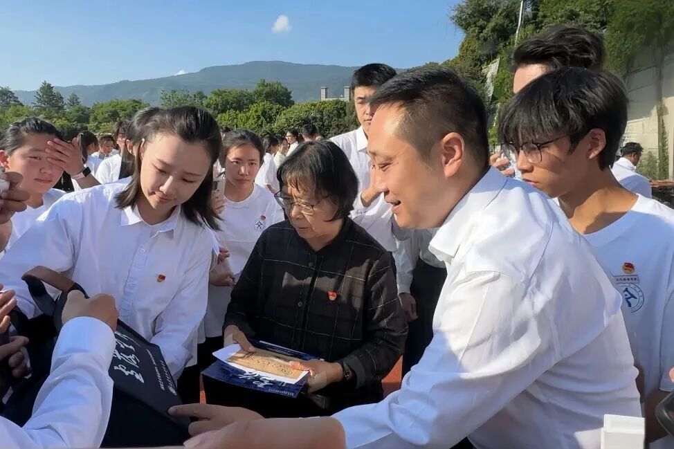 活动结束后,学校师生走到张桂梅老师身边,向她表达了最崇高的敬意,并介绍了原创话剧《雪落无声》的排演情况,真诚地邀请她前往剧场观看。张桂梅老师也给予了师生温暖的鼓励,简单的话语,温暖而有力,深深鼓舞了在场师生。
