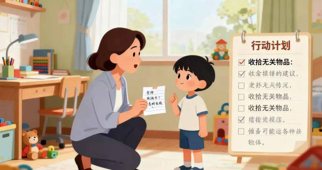 把老师的表扬和建议用孩子能懂的话转述,比如“老师今天夸你发言很积极,还说如果你写作业时先把无关紧要的东西收起来,会更专注,我们要不要试试?”沟通不是终点,落实才是关键。