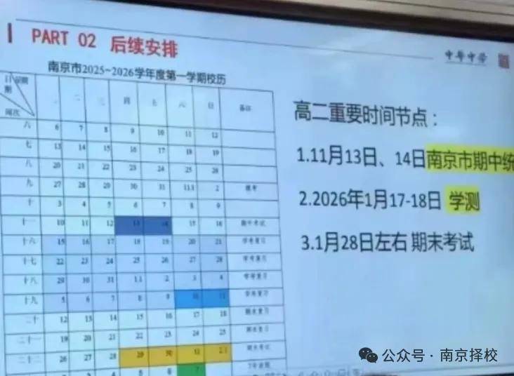 11月13日-14日,高二期中统考;2026年1月17日-18日学测;2026 年1月28日左右期未考试。