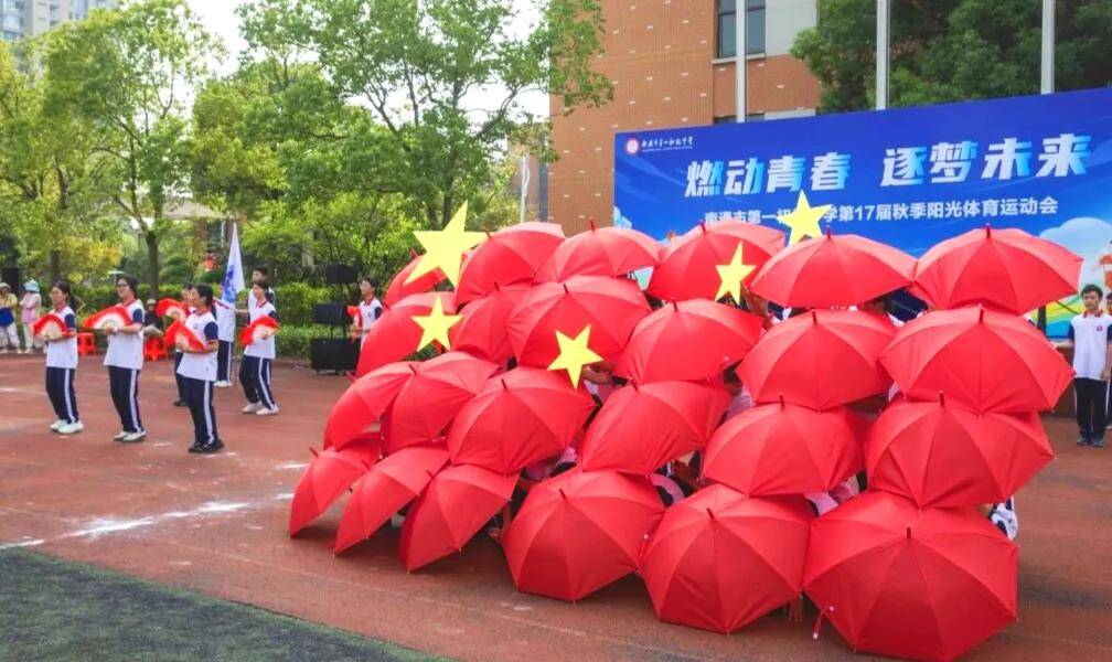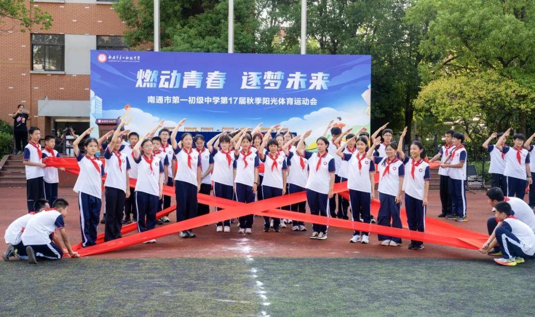 南通市第一初级中学 的学子们在第十七届秋季阳光运动会开幕式表演中展现爱国情怀,向伟大的祖国献礼。
