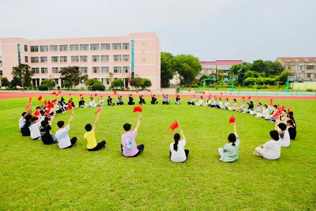 如皋市吴窑镇吴窑初级中学 校园里处处洋溢着爱国热忱。同学们以心为框,定格对祖国的热爱;师生间的温情互动,满是对祖国的深情;那一圈挥舞的国旗,更是青春向祖国的深情告白。愿祖国繁荣昌盛,以青春之名,共贺盛世华诞!