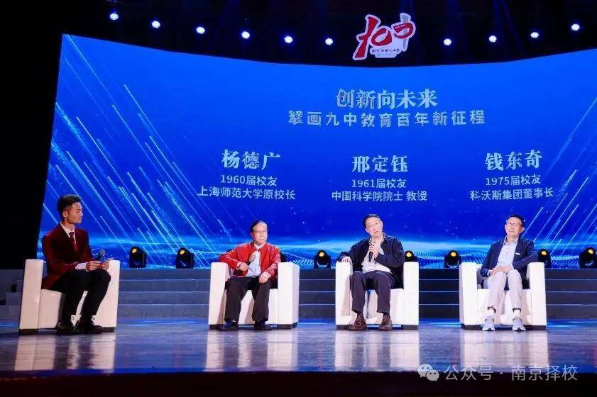 智创未来,是九中面向新时代的宣言。 在一场关于“人工智能与未来教育”的深度对话中,杨德广、邢定钰、钱东奇三位杰出校友的真知灼见,点燃了思想的火花。