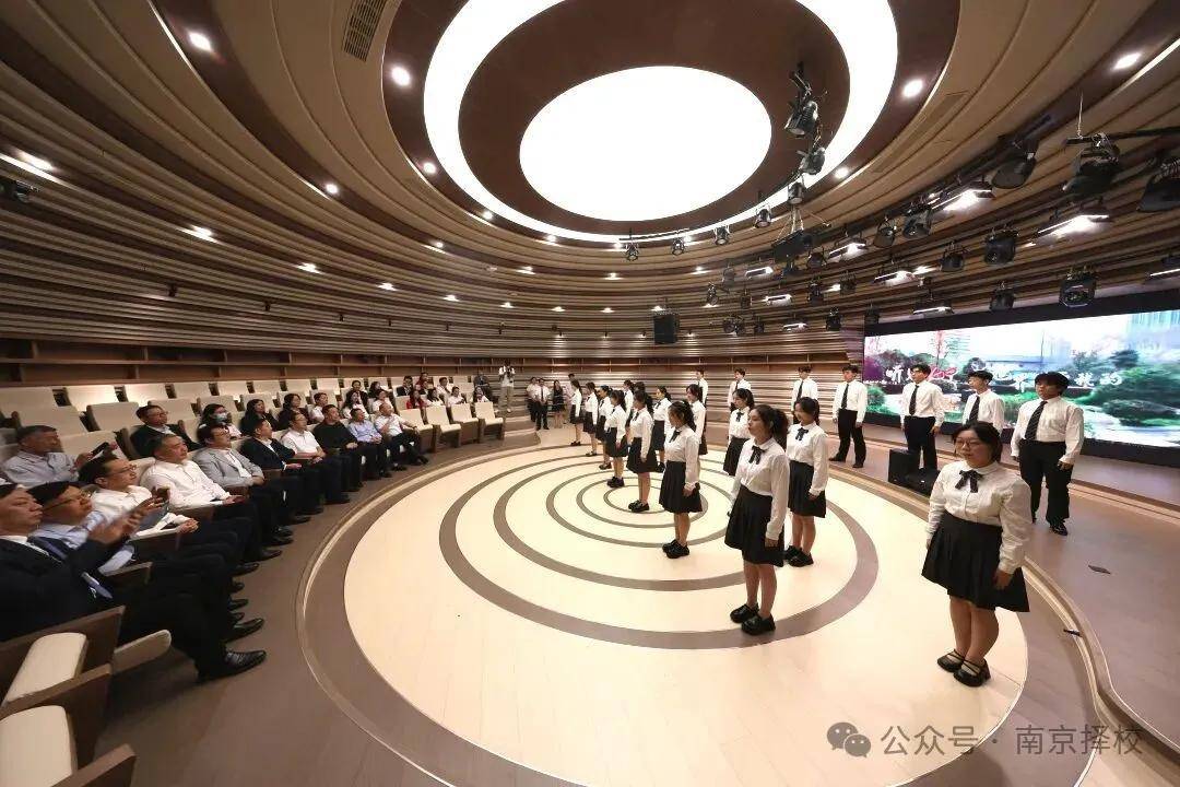 在与会嘉宾的共同见证下,1968届校友、全国文联原副主席覃志刚,南京市政府副秘书长戴兴海、市教育局局长吴秀亮、玄武区委书记闵一峰、玄武区区长张志超和吴铁民校友共同为九中·德基艺术图书馆揭牌。由知名书法家管峻题写的馆名庄重亮相,标志着这座融合人文、艺术与教育功能的现代化校园文化空间正式启用。