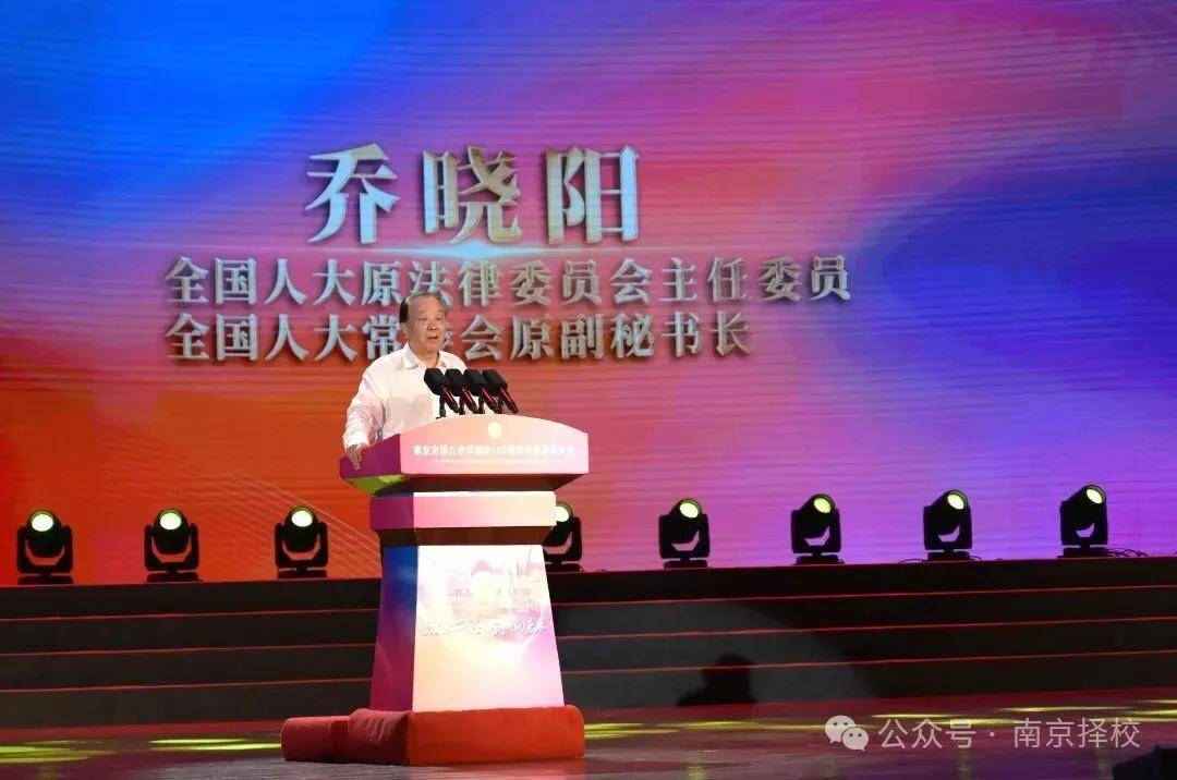 杰出校友代表、全国人大原法律委员会主任委员乔晓阳在发言中动情回忆,九中帮他“系好了人生的第一颗纽扣”。他特别提到,在九中六年求学时光中养成的“严、实、稳”作风,使其在工作中终身受益,并勉励在校学子志存高远,为中华之崛起而读书,为民族复兴而奋斗。