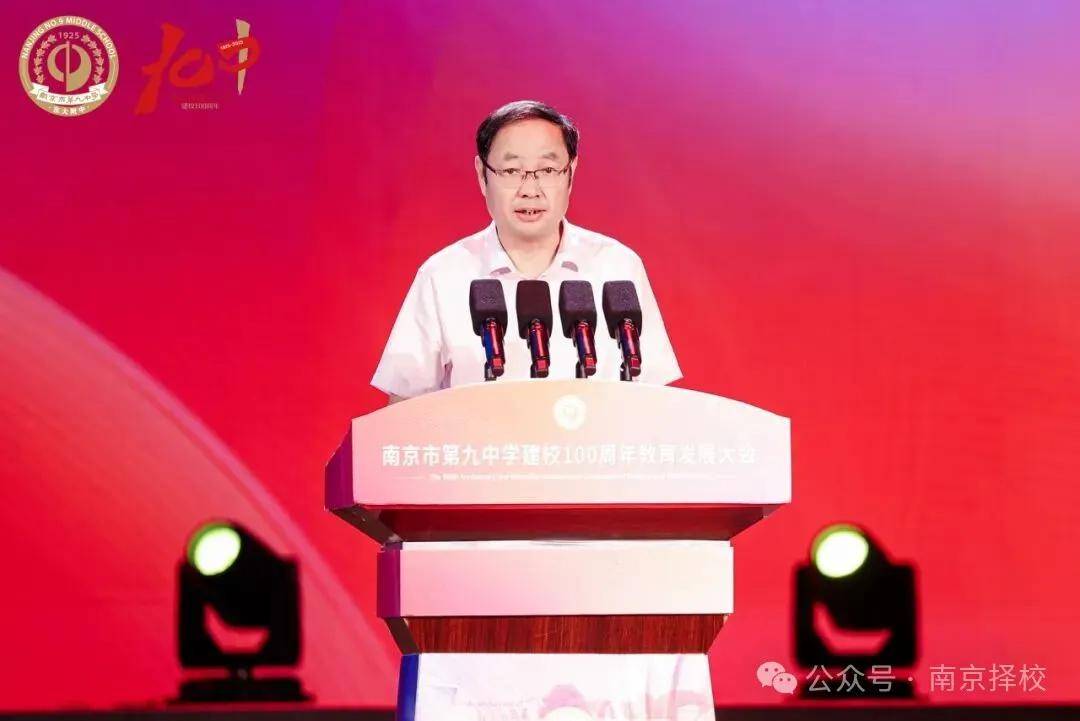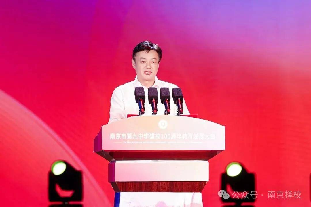 南京市第九中学校长陈晓健以《百年展芳华 九中正青春》为题,深情回顾了学校百年办学历程。他表示,九中将继续秉持“博雅尚美”的校训精神,致力于培养兼具家国情怀、创新精神与审美素养的时代新人。
