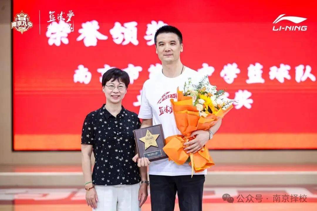在荣誉颁奖环节中,南京市第九中学篮球队授予龚毅指导与金长庆校长“卓越贡献奖”。九中校友龚毅指导是江苏队元老级球员,退役后曾带领九中夺得全国锦标赛冠军,培养了一批批优秀CBA球员。金长庆校长带领九中连续参加三届中运会,多次夺得中国高中篮球联赛亚军。