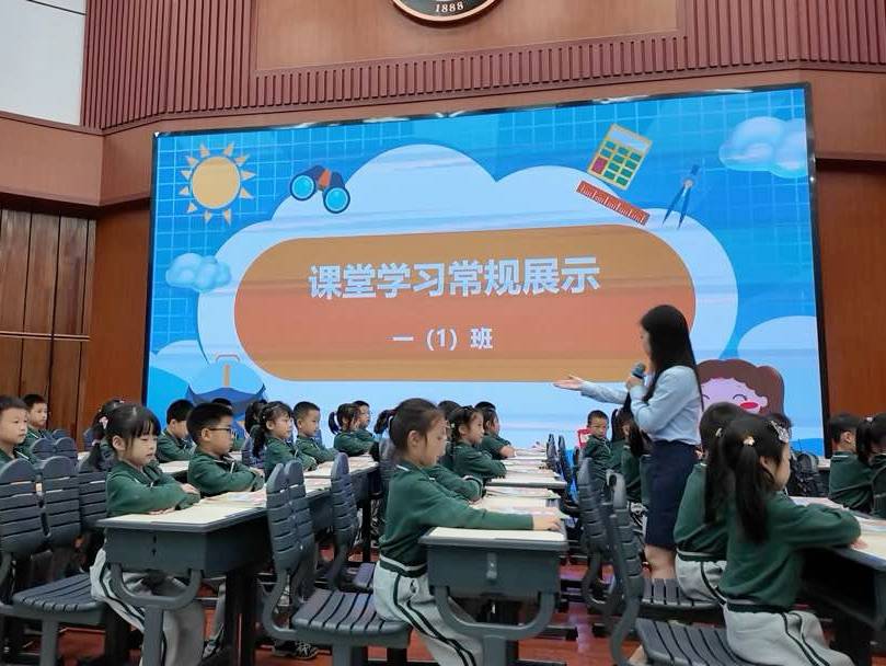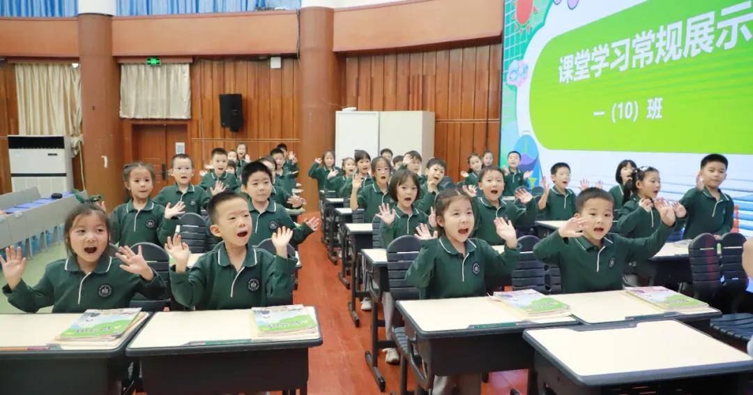 金陵河西小学部举行一年级课堂学习常规比赛,孩子们通过规范动作和礼仪展示良好习惯,体现习惯对成长的重要性。