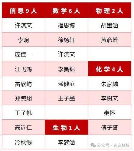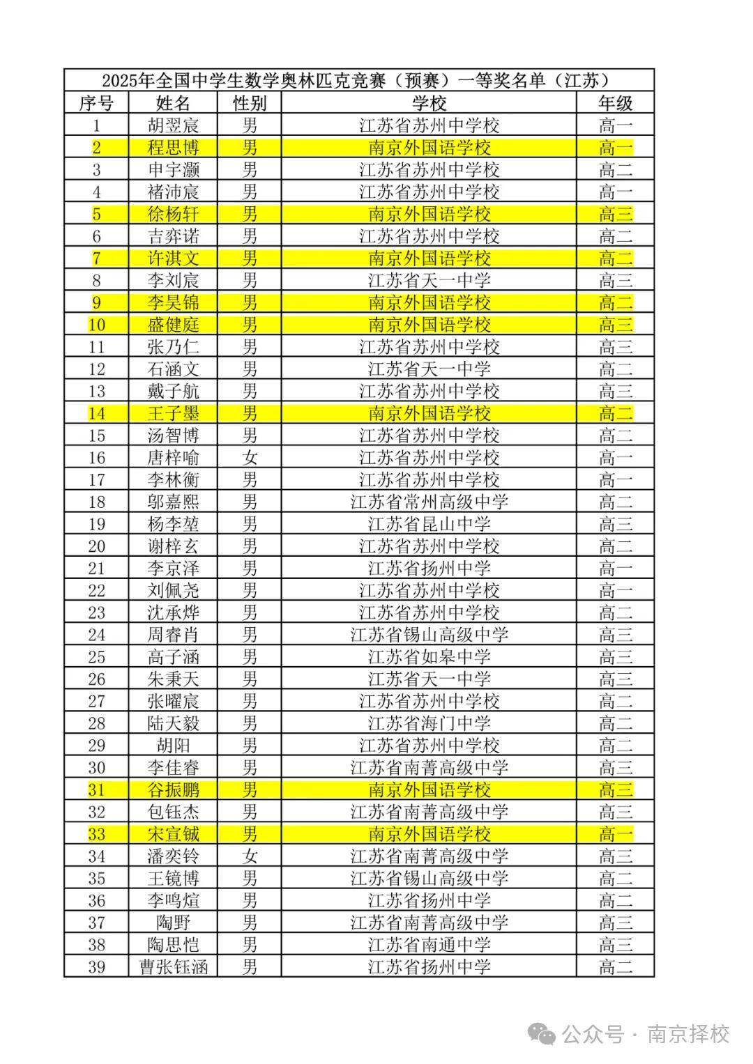 南外十名学子获奥赛一等奖,六人进省队。获奖者覆盖各年级。