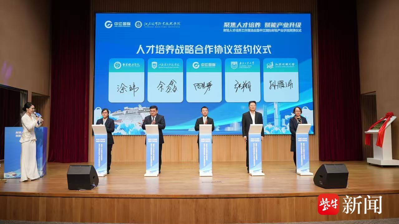 中江国际集团党委副书记孙光能介绍,集团与江苏海事职业技术学院签署校企战略合作协议,共建“国际邮轮人才培训中心”,创新打造全链条培养模式,并通过“邮轮直通车”现代学徒制项目,实现从校内学习到邮轮顶岗无缝衔接。项目累计培养邮轮乘务人才逾千人,就业稳定率超90%。“中江国际邮轮产业学院”的成立,将进一步深化校企合作目,培养高素质邮轮人才。