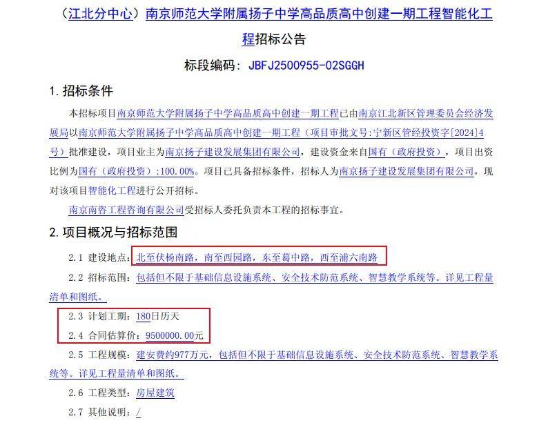 近日,南京师范大学附属扬子中学高品质高中创建一期智能化工程项目启动公开招标。